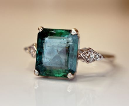 Beautiful 3.04 CT Natural Emerald With Natural Diamonds & 18k Gold