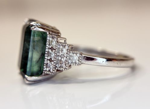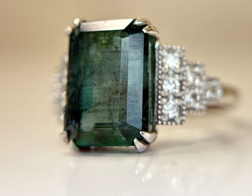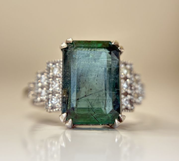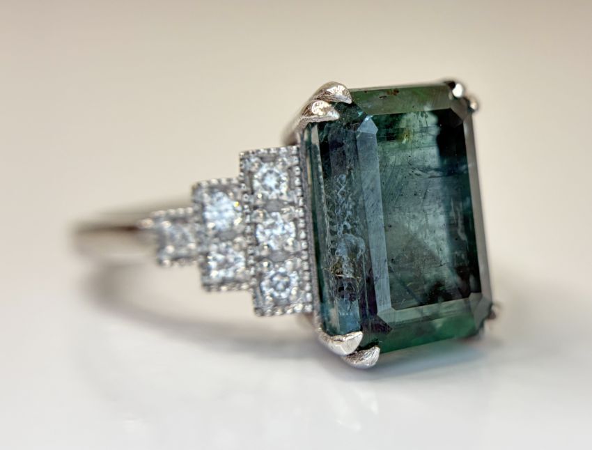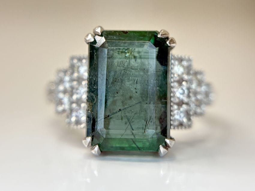 Beautiful 5.84 CT Natural Emerald With Natural Diamonds & 18k Gold