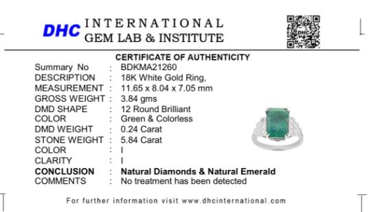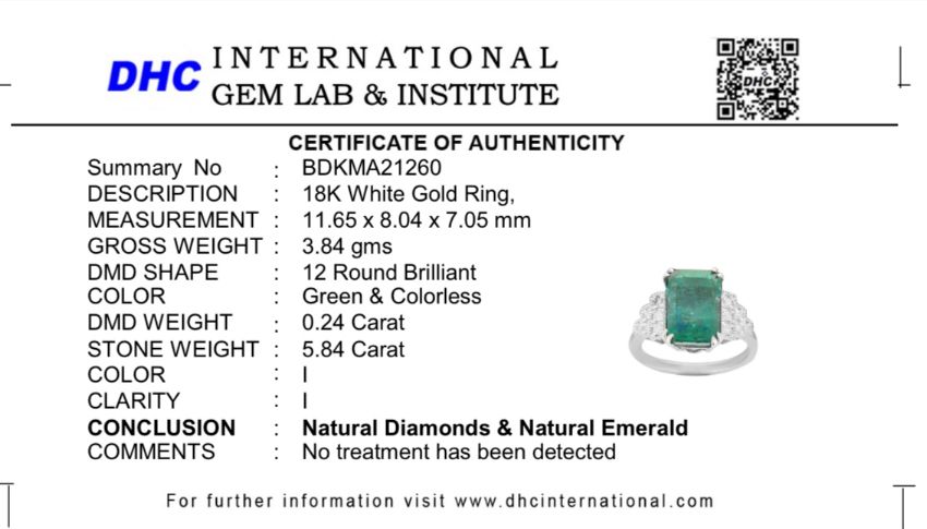 Title: Beautiful 5.84 CT Natural Emerald With Natural Diamonds & 18k Gold