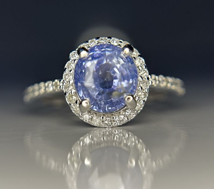 Title: Beautiful 3.10 CT Unheated Ceylon Blue Sapphire With Natural Diamonds & 18k Gold