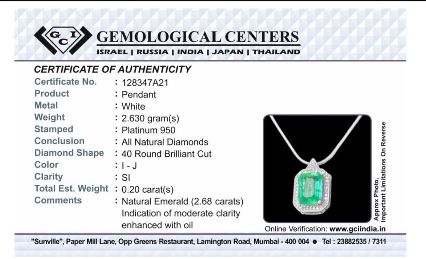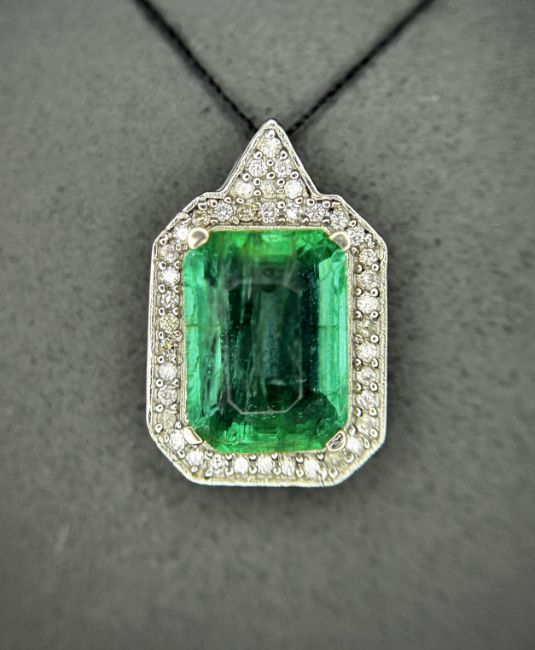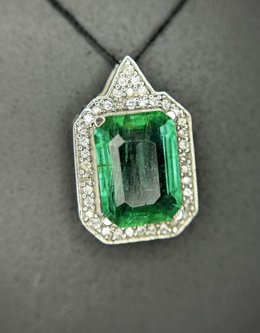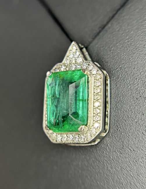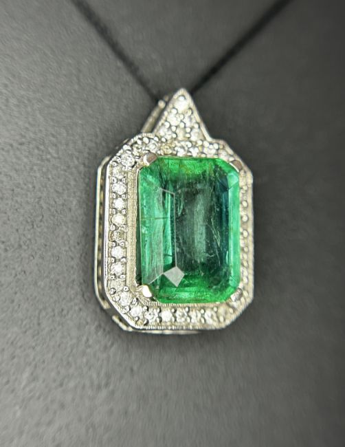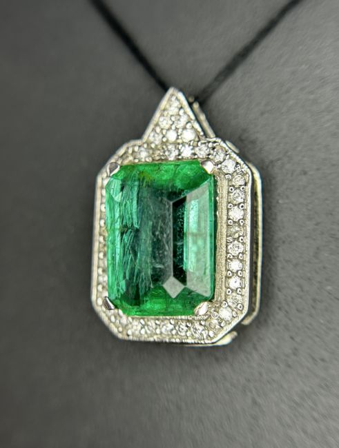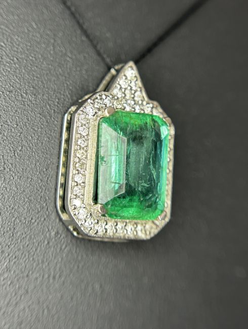 Title: Beautiful 2.68 CT Natural Emerald Pendant With Diamonds & Platinum 950