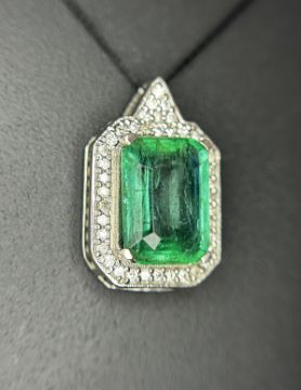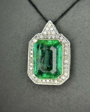 Beautiful 2.68 CT Natural Emerald Pendant in Platinum 950 With Natural Diamonds
