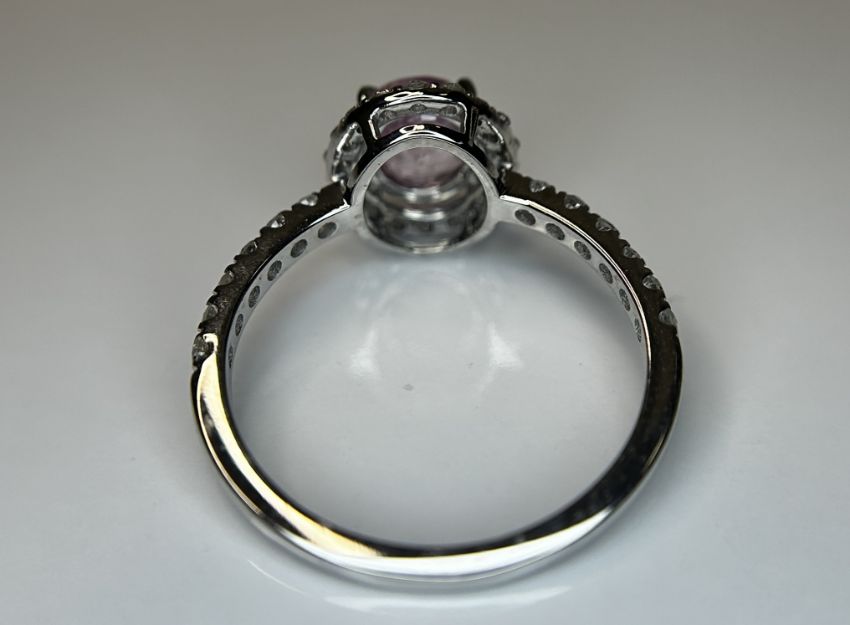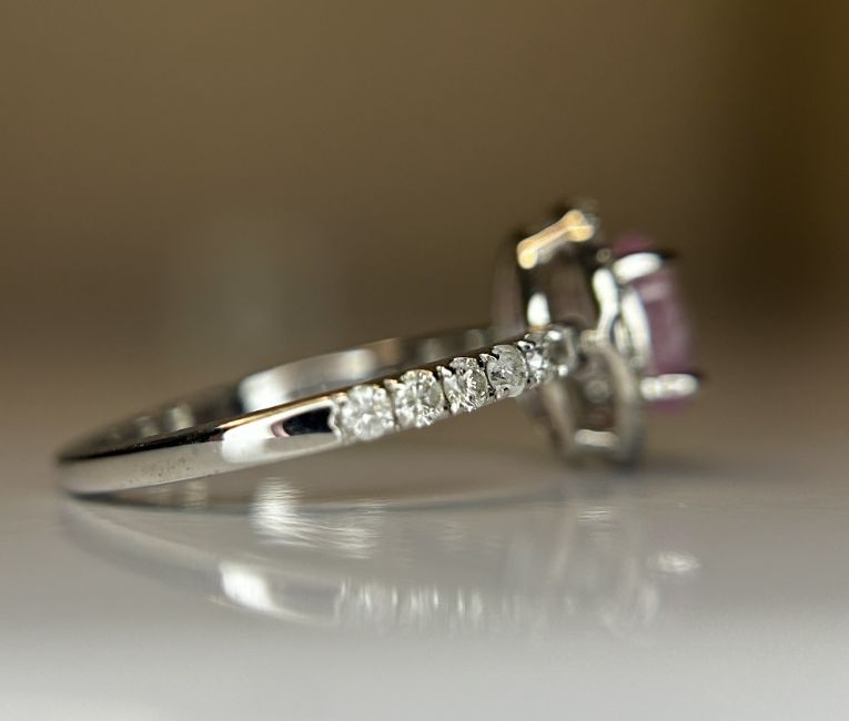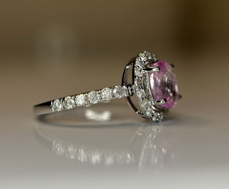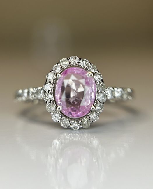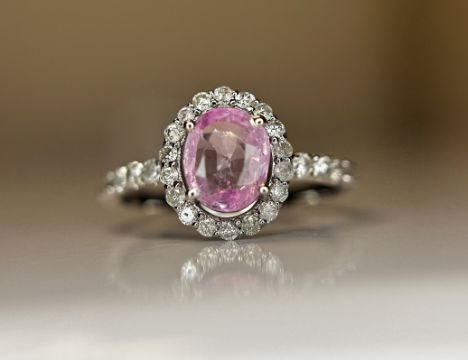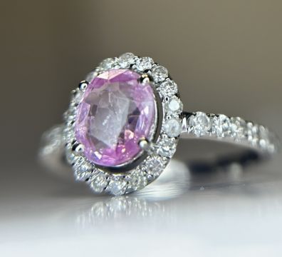 Beautiful Natural Ceylon Pink Sapphire With Natural Diamonds & 18k White Gold.