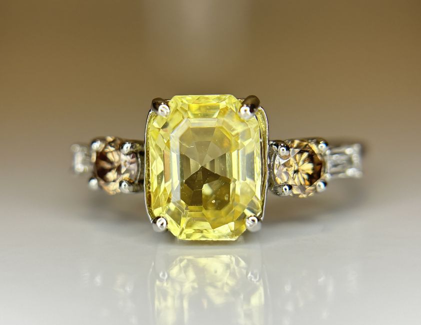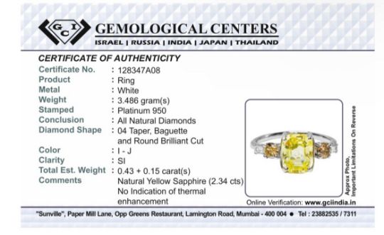 Title: Beautiful 2.34ct Unheated Untreated Natural Ceylon Yellow Sapphire Diamonds & 950 Platinum