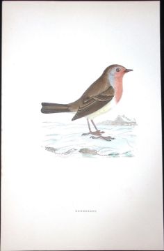 Title: Redbreast Rev Morris Antique History of British Birds 130 Years-Old Engraving-98