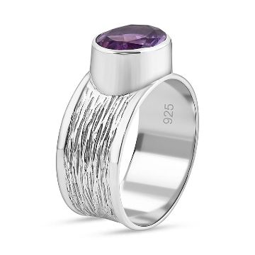 The exquisite ring features a captivating 3.25 Ct amethyst, set in finely crafted sterling silver.