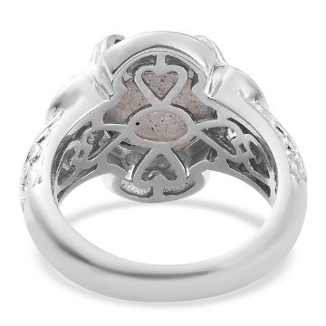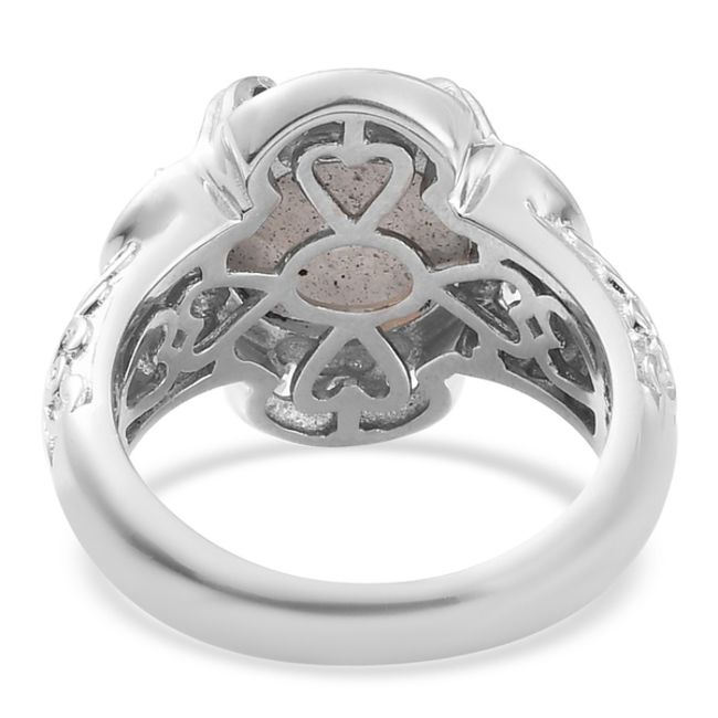 New! Fire Labradorite and Simulated Diamond Floral Ring (Size K) in Silver Tone 4.95 Ct & Fire Labradorite Bangle (Size 7.5) with Spring Ring Clasp in Stainless Steel 6.09 Ct.