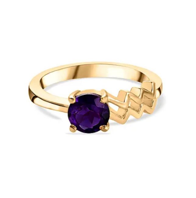 New! AA Amethyst Zodiac - Aquarius Ring in 14K Gold Overlay Sterling Silver, size Q.