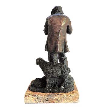 The statue is on a marble base.