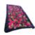Blue background with pink roses, hand rolled and stitched edges.
