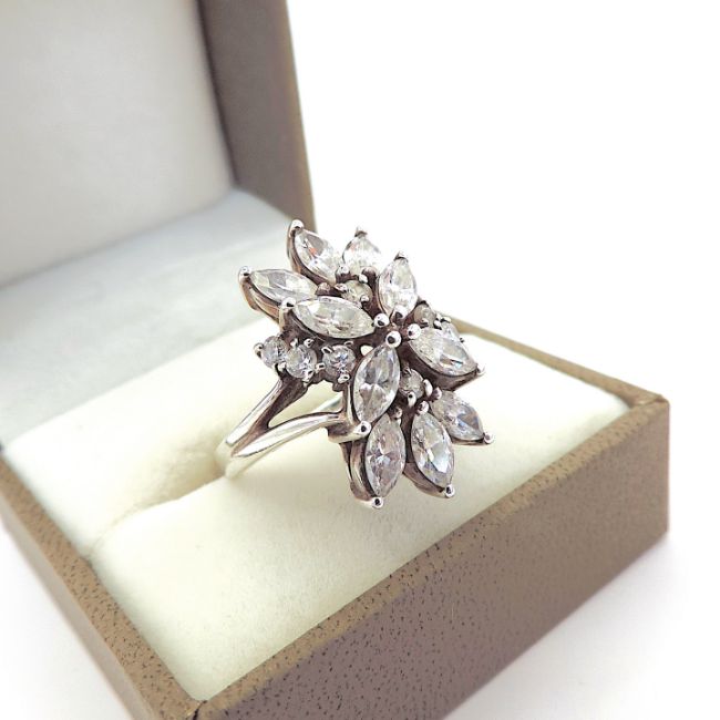 Title: Sterling Silver Lab Created Diamond Dress Ring New With Gift Box