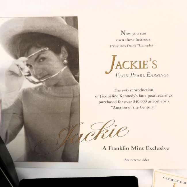 Title: Franklin Mint Exclusive Jackie's Pearl Earrings (Pierced Ears) Boxed With Certificates