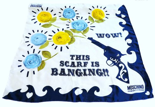 A rare MOSCHINO CHEAPANDCHIC 'WOW This scarf is banging' 100% silk Scarf.