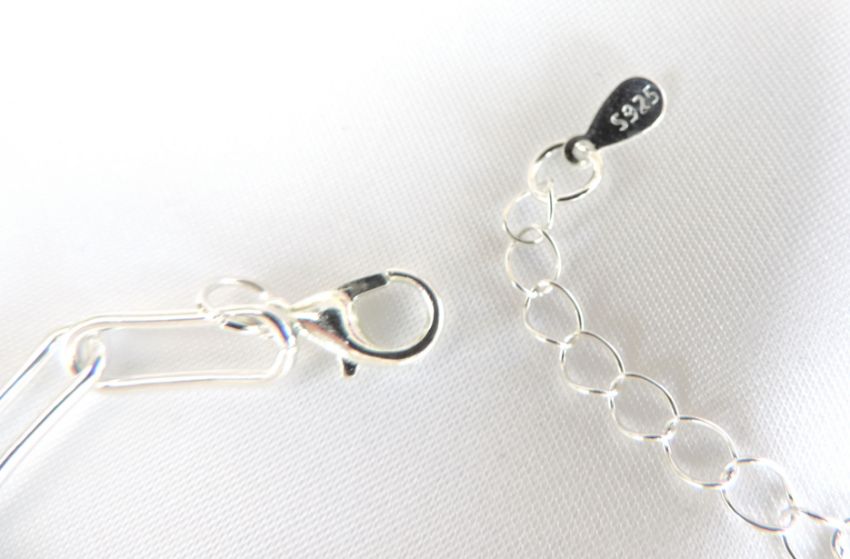 925 sterling silver oval open link bracelet measuring 8.5 inches end to end including extender chain.