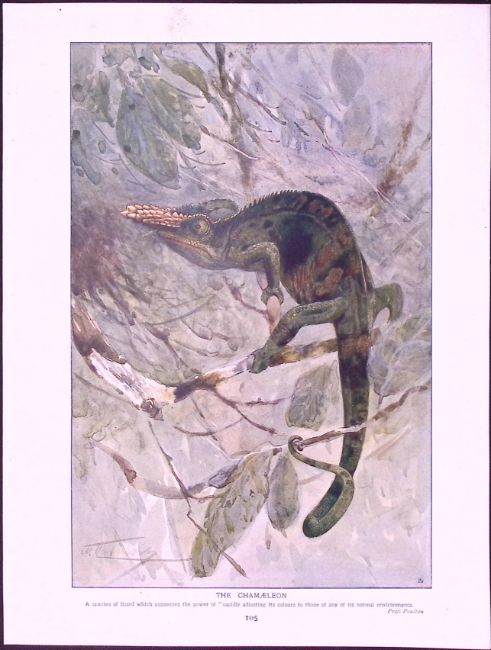 Title: Chameleon & Group of Insects Antique Double-Sided Colour Plate-37