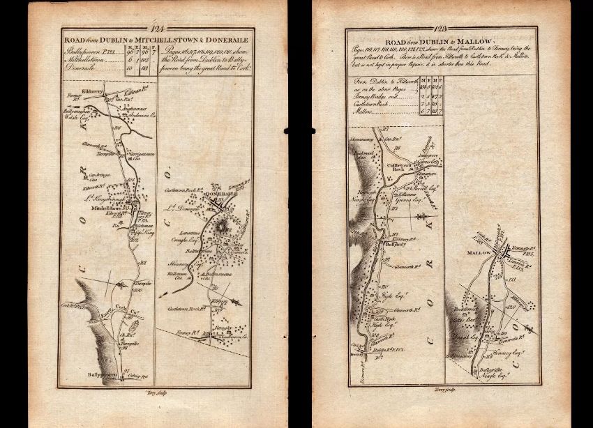 Title: Ireland Rare 1778 Antique 247 Years-Old Road Map Dublin to Mitchelstown Cork
