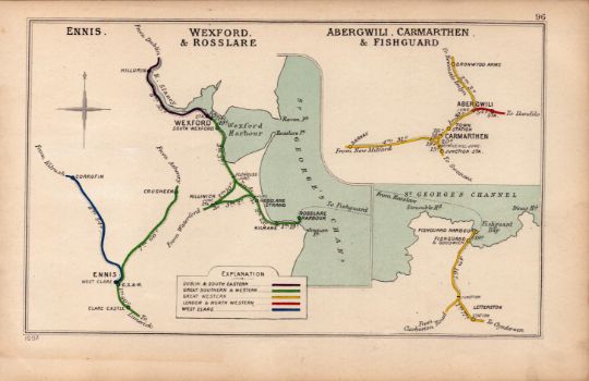 Title: Ennis Wexford & Rosslare Ireland Antique Railway Junctions Diagram-96.