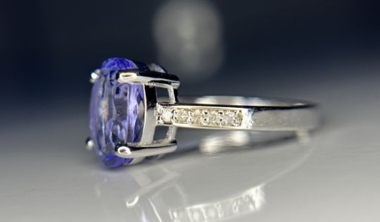 Beautiful 3.41 CT Natural Tanzanite With Natural Diamonds & 18k Gold