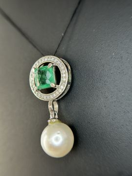 Beautiful 5.55CT South Sea Pearl, 1.14ct Emerald, Diamonds & 950 Platinum Pendant