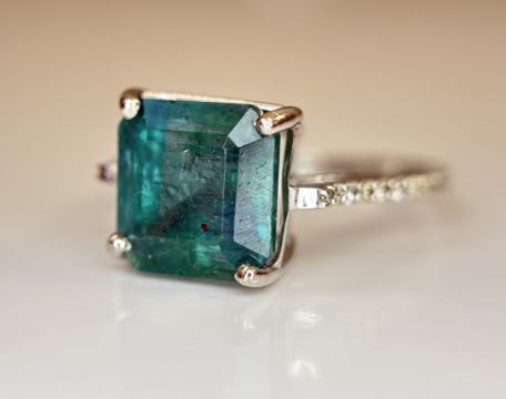 Title: Beautiful 3.92 CT Natural Emerald Ring With Natural Diamonds & Platinum 950