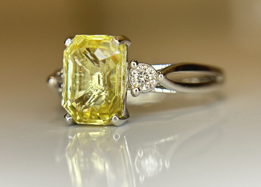 Beautiful 2.40ct Unheated Untreated Natural Ceylon Yellow Sapphire Diamonds & 950 Platinum