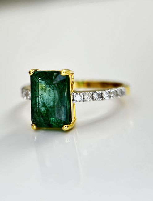 Beautiful 2.41 CT Natural Emerald With Natural Diamonds & 18k Gold