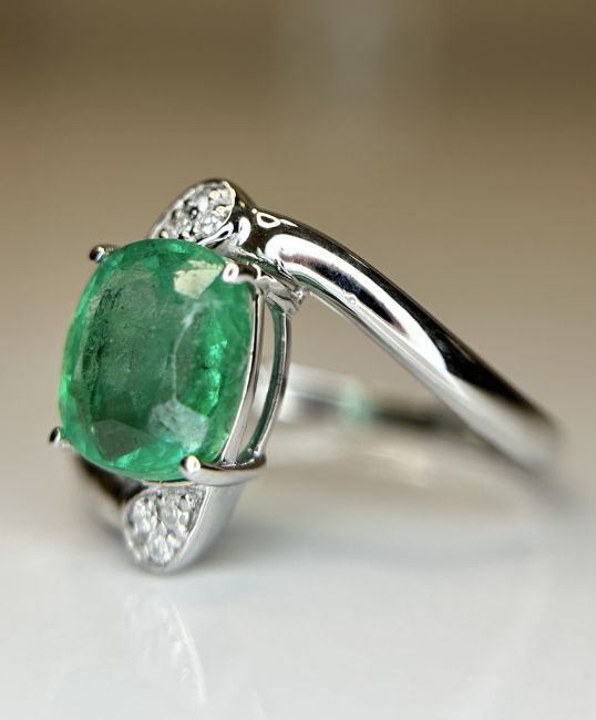 Beautiful 2.19 CT Natural Emerald With Natural Diamonds & 18k Gold