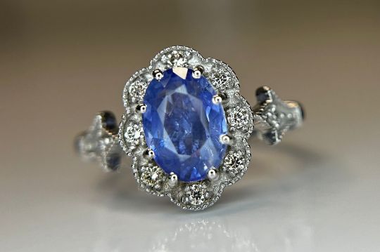 Beautiful 1.74 ct Natural Ceylon Blue Sapphire With Natural Diamonds & 18k White Gold.
