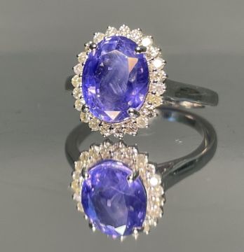 Title: Unheated Untreated 3.87 CT Natural Ceylon Purple Sapphire Diamonds & 18k Gold