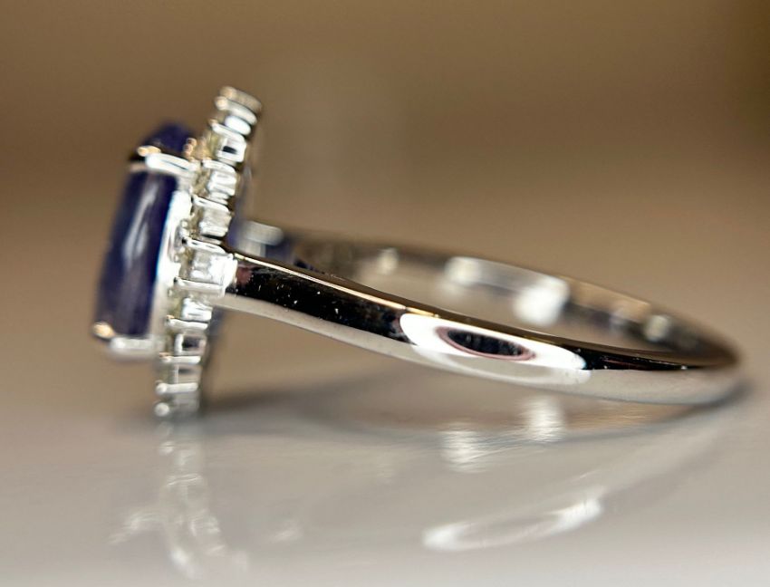 Beautiful 3.87 ct Natural Ceylon Blue Sapphire With Natural Diamonds & 18k White Gold.