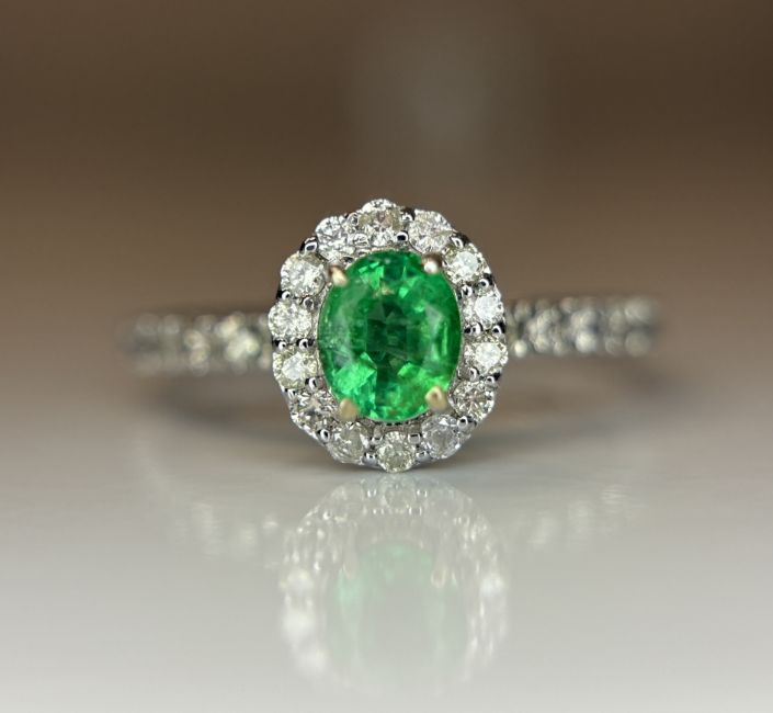 Beautiful 0.42 CT Natural Emerald With Natural Diamonds & 18k Gold