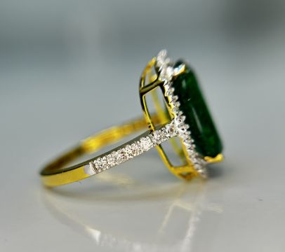 Beautiful 3.90 CT Natural Emerald With Natural Diamonds & 18k Gold