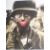 Surrealist image of a pair of bright red Joker lips placed on a GI Joe.
