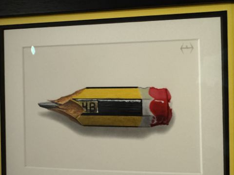 The piece is a triptych, consisting of 3 separate unique artworks by Jamie, with his classic pencil drawings, showing the pencil gradually deteriorating through the stages of use.