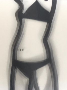 A lenticular moving image print from Julian Opies Exhibition Walking, Dancing, Undressing, Smoking for the Alan Cristea Gallery, 2006.