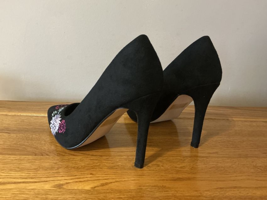 These Tanya shoes feature a modern design with a 9cm heel for that touch of height and are refreshed with beautiful floral embroidery to complete the eye catching design.