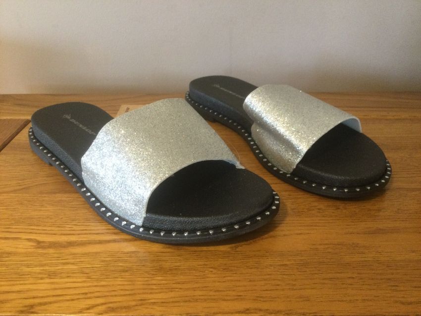 Title: Dunlop ÒAvaÓ Ladies Sandals, Size 6, Silver - New RRP £25.00Description: Dunlop ÒAvaÓ Ladies Sandals, Size 6, Silver - New RRP £25.00These Dunlop ÒAvaÓ Sandals are both elegant and comfortable and the Silver and Stud detailing will compliment most outfits.Dunlop Ava women's standard fit sandal. Take great strides this summer in the Dunlop Ava sandal.ÊThis women's slip-on mule encompasses a textile silver glitter upper that not only looks great, but this women's sandal is also very comfortable due to the lightweight moulded footbed that is flexible.These Dunlop ÒAvaÓ Sandals are Brand New with tags and in their original package with manufacturers product label.Dispatch via Royal Mail 2nd Class postage buyer pays £3.50 or free collection Multi-site auction - please check each lot for delivery & VAT information, or contact us for more info via contact@williamgeorge.com.Condition: NewDelivery option: Collection & DeliveryLocation: DE65Category: Liquidations