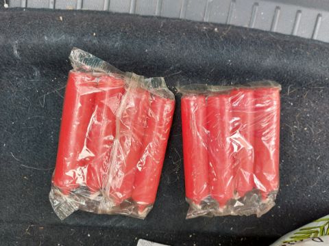 12 packs of red candles approx 10 cm tall.