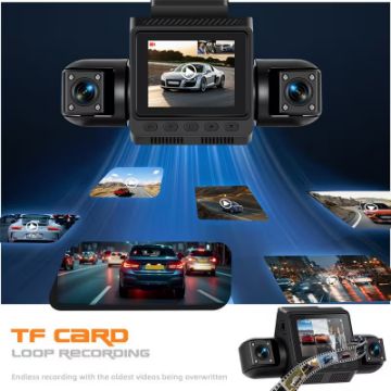 Note: When the rear camera is connected, the dash cam records the front view, right interior view, and rear view. The right interior camera will not function in this mode. - Loop Recording