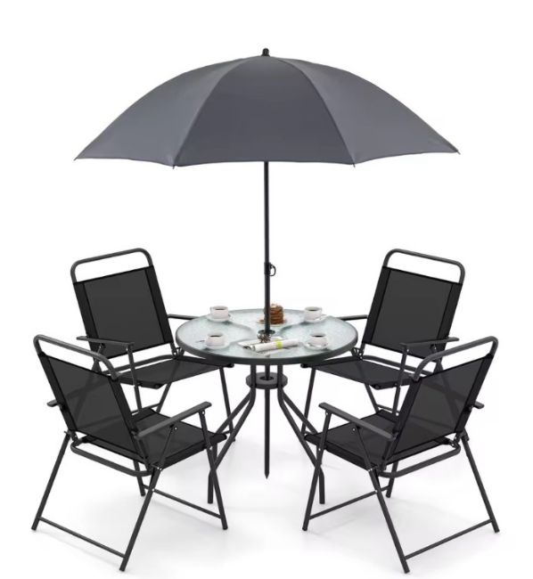 Transform your outdoor dining experience with this 6-piece patio set, featuring both convenience and functionality.
