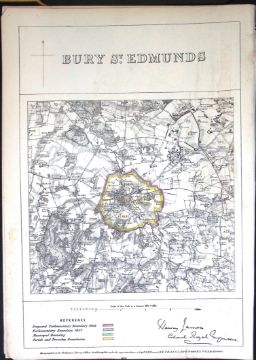 Title: Bury St Edmunds Suffolk Boundary Commission 157-Year-Old Coloured Antique Map.