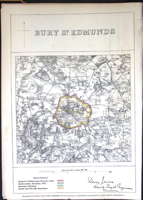 Bury St Edmunds Suffolk Boundary Commission 157-Year-Old Coloured Antique Map.