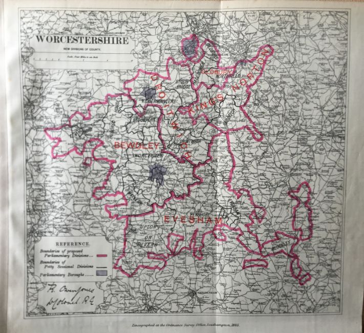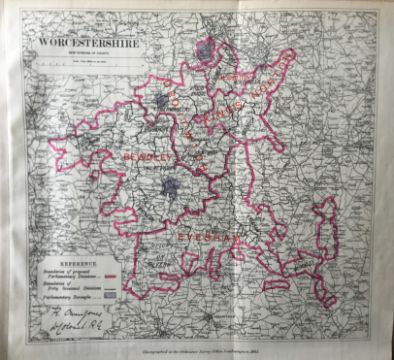 Title: Antique 139 Years-Old Scarce Map Worcestershire 1885 Boundary Changes.