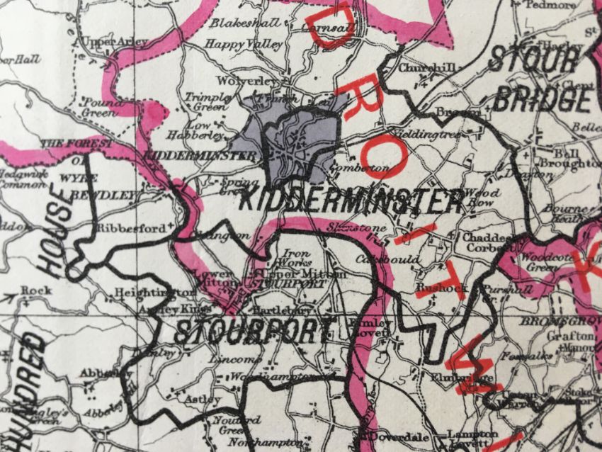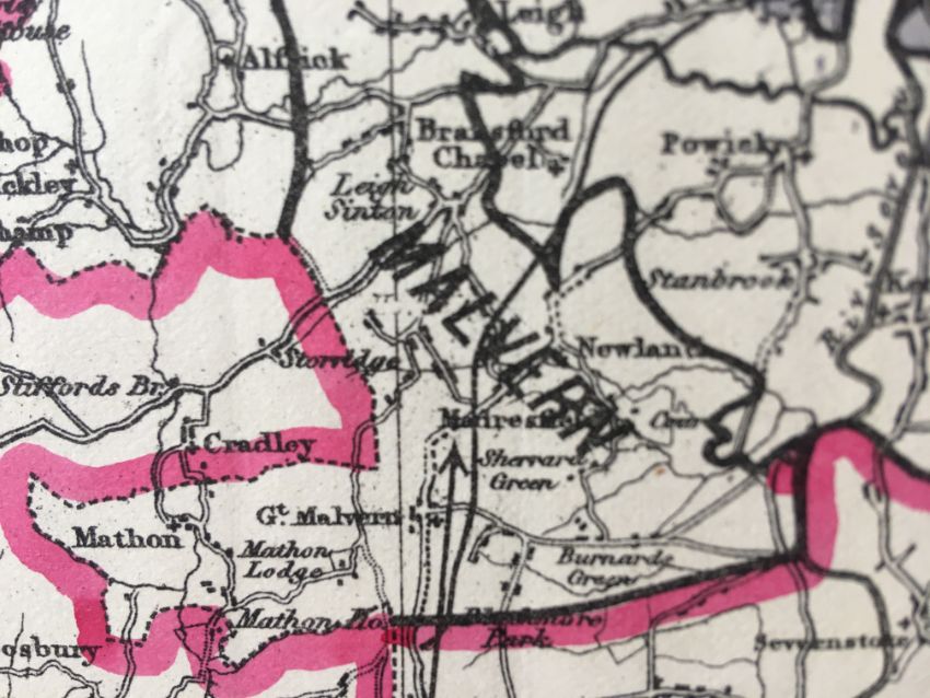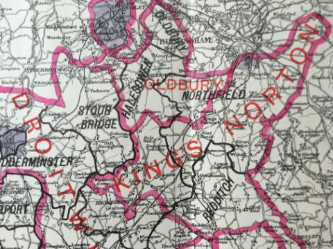 Antique 139 Years-Old Scarce Map Worcestershire 1885 Boundary Changes.