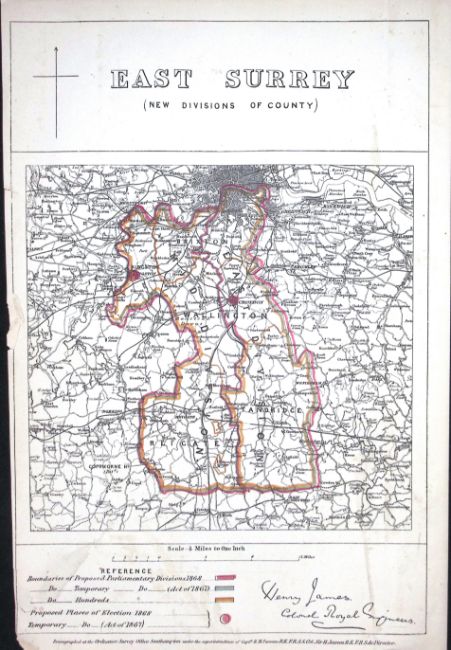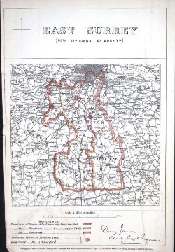 East Surrey Boundary Commission 157-Year-Old Coloured Antique Map.