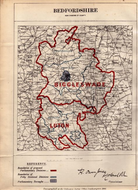 Title: Antique 139 Years-Old Scarce Map of Bedfordshire Boundary Changes 1885.