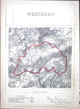 Westbury Wiltshire Boundary Commission 157-Year-Old Coloured Antique Map.