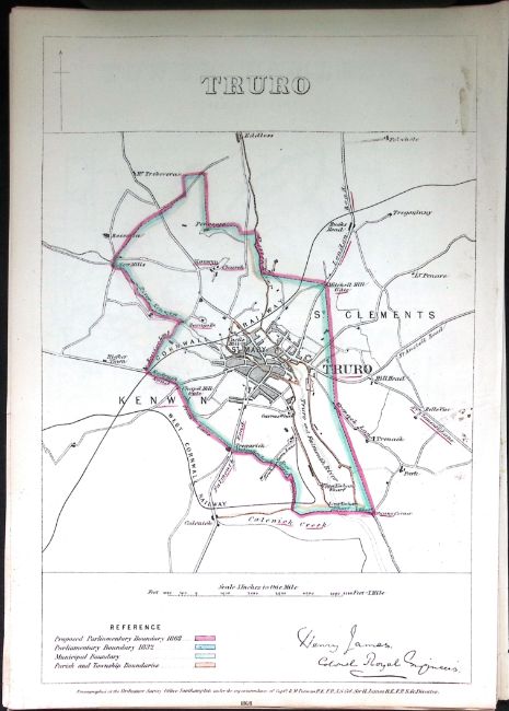 Truro Cornwall Boundary Commission 157-Year-Old Antique Map.