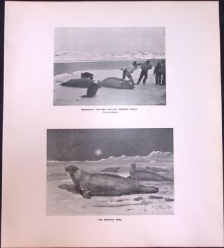 Title: Esquimaux Hunters Bearded Seals Limited-Edition J.G. Millais Antique Print.
