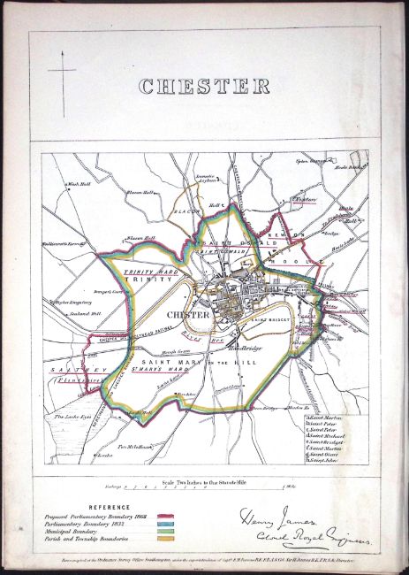 Chester Cheshire Boundary Commission 157-Year-Old Antique Map.